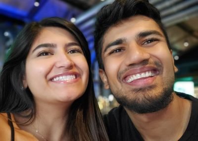 A few months after we both finished college, on a random Saturday evening our friends invited us to go bowling in Atlanta. We met up with all of our friends, including officially meeting each other for the first time. Hari tried to show off his “skills” to his future-fiance. Alyssa hustled him, strike after strike.